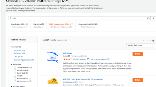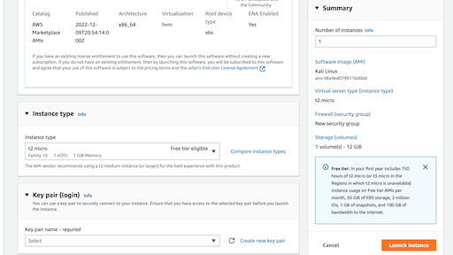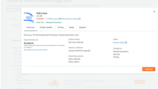 1/ Kali in AWS: First we need to get Kali installed in EC2. It is a fairly straight forward process. I will illustrate this with the screenshots below: