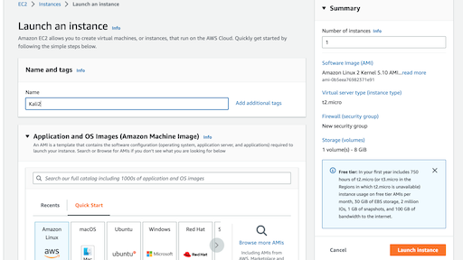 1/ Kali in AWS: First we need to get Kali installed in EC2. It is a fairly straight forward process. I will illustrate this with the screenshots below:
